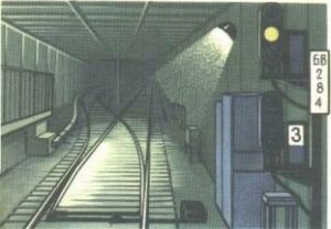 световой знак "Остановка первого вагона" устанавливается с правой стороны по ходу движения на станциях закрытого типа (рис. 6.24). Рядом со световым знаком располагается табличка с названием станции и номером пути. Допускается размещение светового знака "Остановка первого вагона" в тупиках станций;